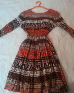 Vestido con mangas estampado. Vestido hasta la rodilla estampado con mangas color rojo en buen estado