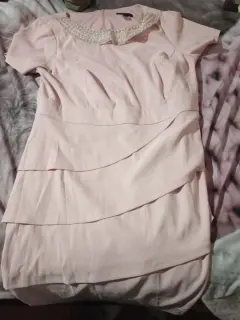 Vestido con perlas en el cuello, marca muy buena, con cierre de atrás, talla grande