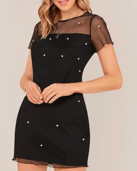 Vestido con perlitas imitación. Vestido talla S con perlitas de imitación nuevo