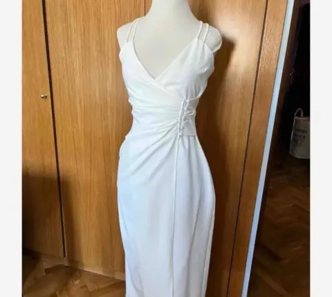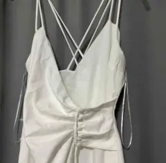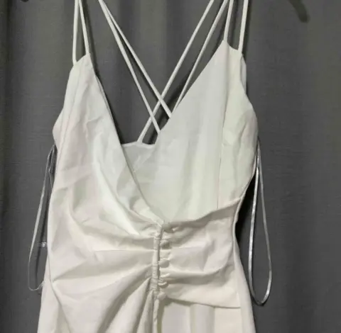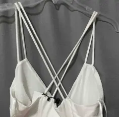 Vestido con tirantes cruzados. Nuevo, con etiqueta y sin detalles. La tela no estira. Los tirantes son cruzados en la parte de la espalda.