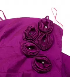 Vestido con tirantes morado tornasol con rosas al frente corto, ideal para graduación, cocktail, fiestas, etc. Ideal para primavera verano.