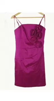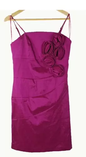 Vestido con tirantes morada tornasol Talla S. Vestido con tirantes morado tornasol con rosas al frente corto, ideal para graduación, cocktail, fiestas, etc. Ideal para primavera verano.