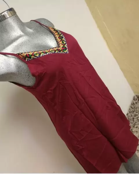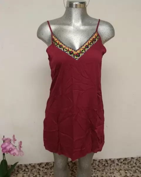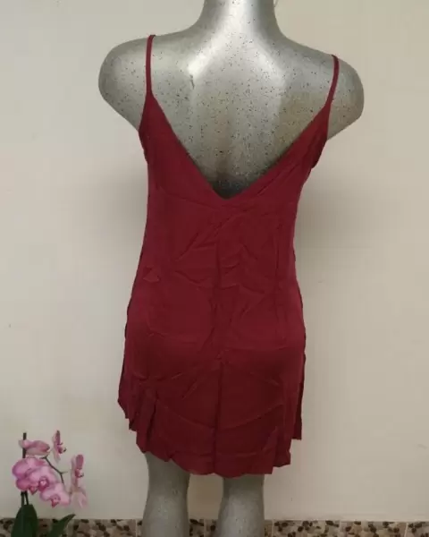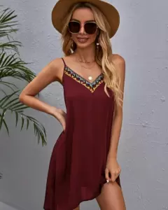 Bonito vestido corto de tirantes con ribete color vino