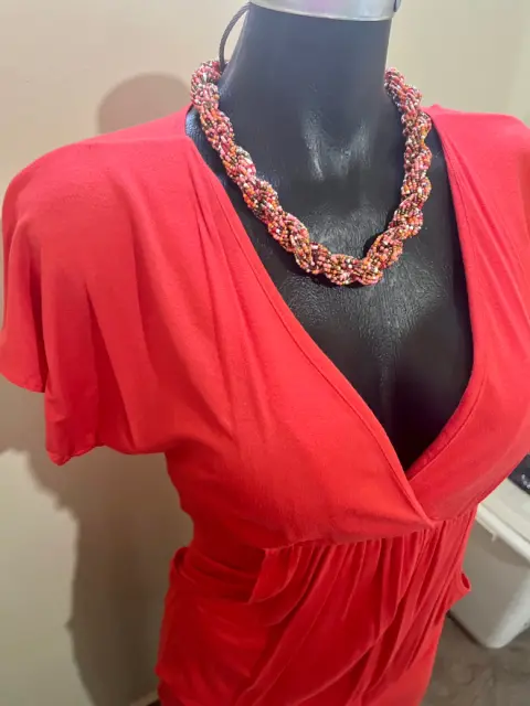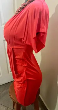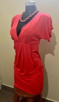 Vestido coral. Bonito vestido fresco con escote en V, entallado marca vicky form, talla chica o mediana, la tela estira