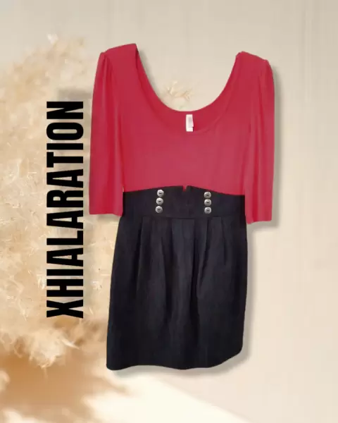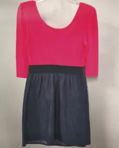 Bonito vestido con mezclilla ligera, arriba tiene color rosa acoralado en tela algodón. T gustará mucho.