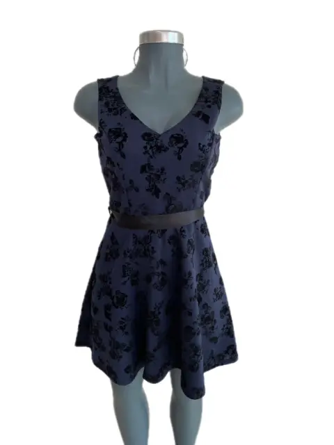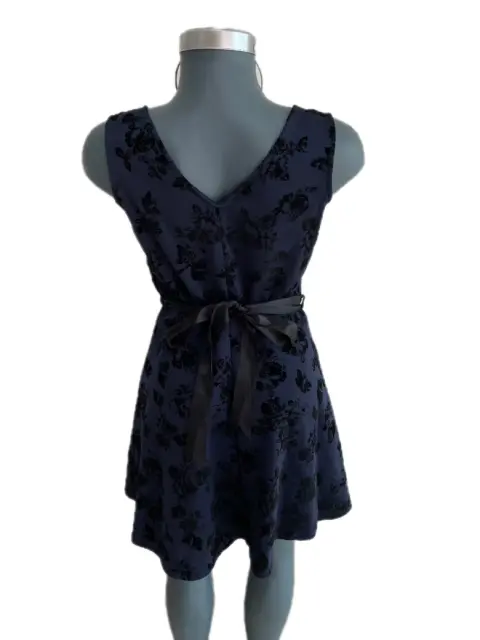 Vestido corte A azul marino. Vestido color azul marino con flores en terciopelo negras El listón de la cintura se puede quitar y poner Corte A