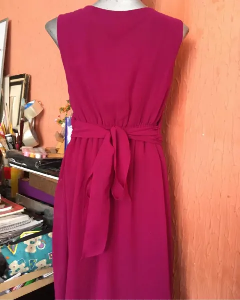 Bello vestido corte imperio en tela transparente con forro y cintas para resaltar la cintura escote en v y largo abajo de la rodilla