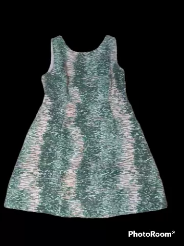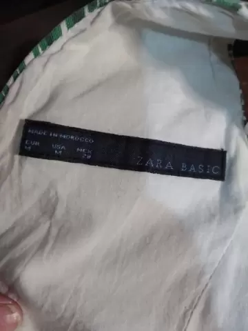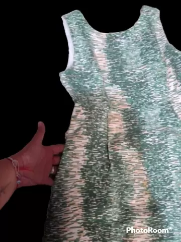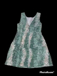 Vestido corte princesa Zara. De tela gruesa, con forro, cuello redondo al frente y en V por la espalda, tiene bolsitas a los lados y s cortito