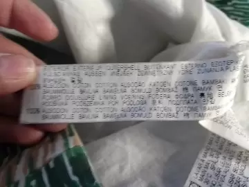 De tela gruesa, con forro, cuello redondo al frente y en V por la espalda, tiene bolsitas a los lados y s cortito