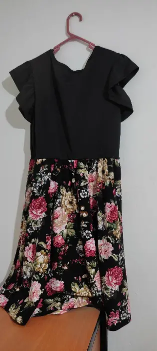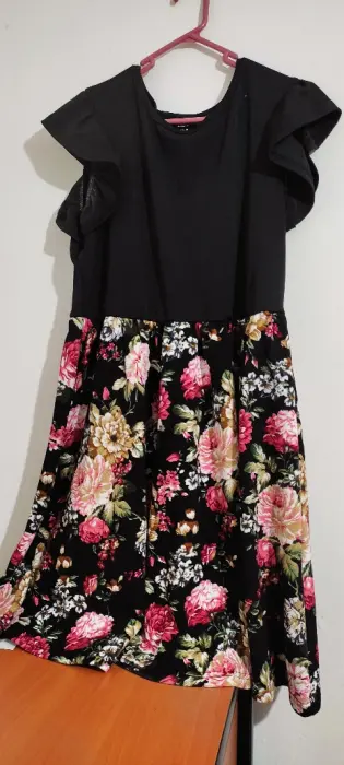 Lindo vestido corto con flores en la parte de la falda, está nuevo, luce espectacular