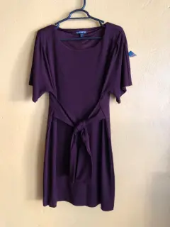 Vestido corto. Color uva nuevo , horma muy bonito y luce con el nudo atrás o delante