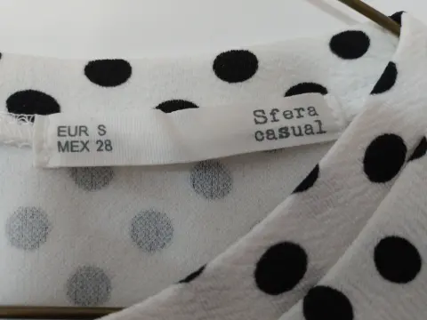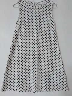 Vestido corto, sin mangas, color blanco, y lunares color negreo, casual, marca SFERA casual , T S
