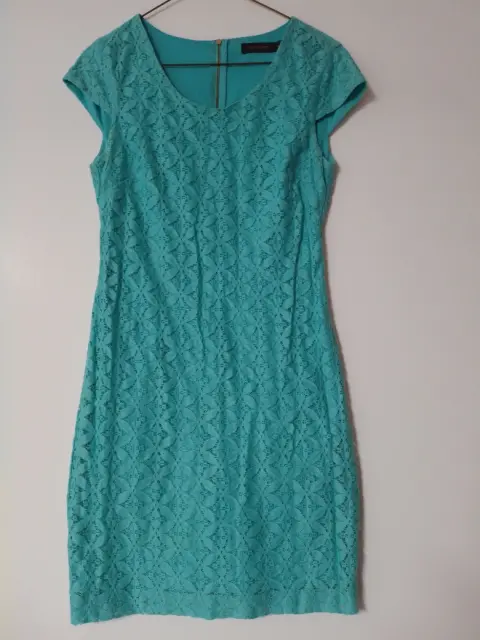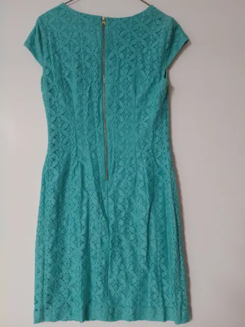Vestido corto, azul turquesa con excelente caída, manga corta, marca The Limited,TXS