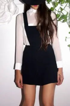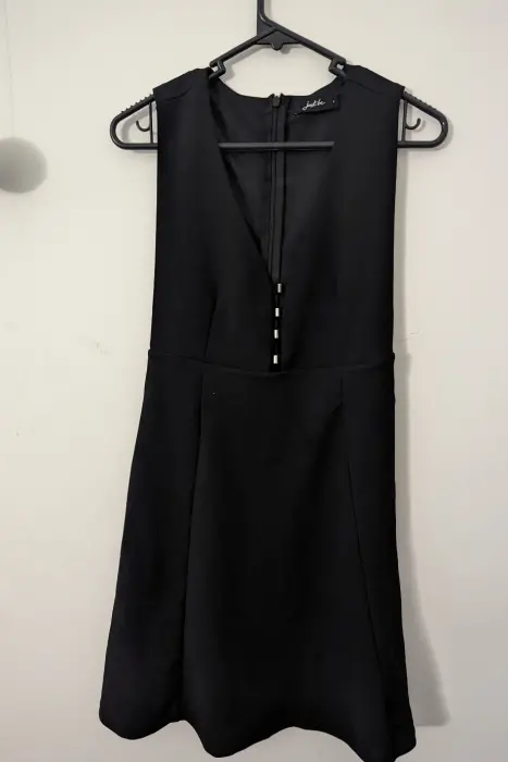 Vestido corto. Vestido casual tipo jumper con abertura a los costados y enfrente, detalles de plate en el frente. Primera y ultima imagen de referencia.