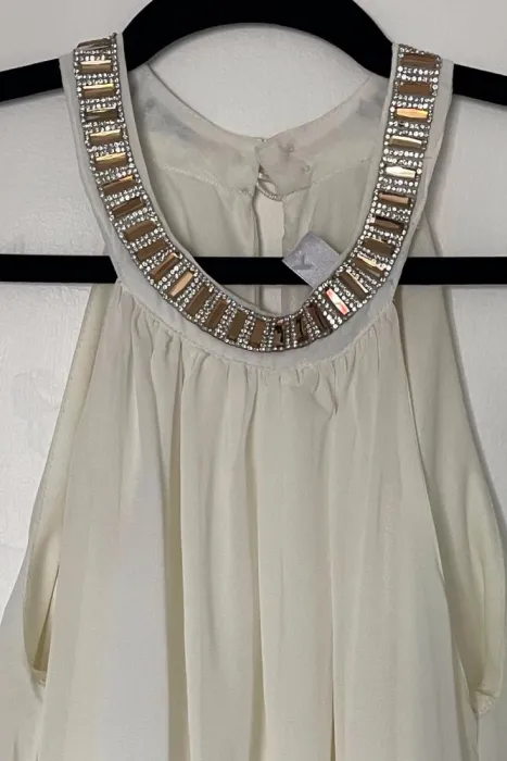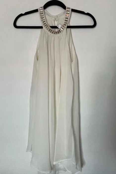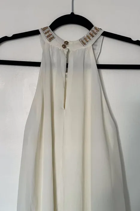 Vestido corto. Vestido de gasa Corte halterCon fondo, no se transparenta
