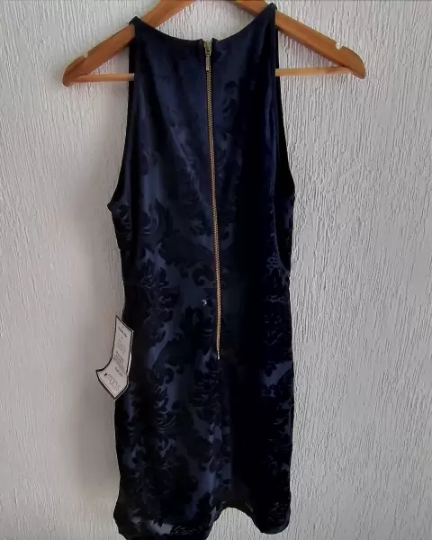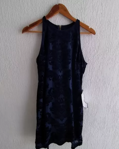Vestido corto. Hermoso vestido azul marino el estampado es aterciopelado, cierre en la parte de atrás.