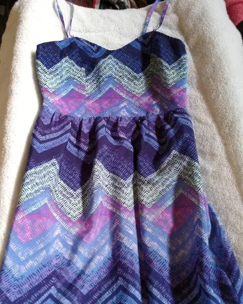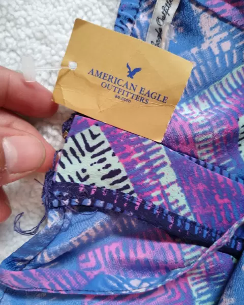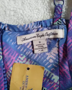 Vestido Corto American Eagle Morado, Azul, Rosa talla 0. Tiene una avertura muy coqueta en la espalda 😋 Nuevo sin detalle super bien tratado.