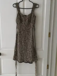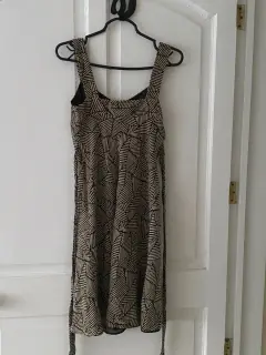 Vestido corto. Tela muy suave y cómoda, cinta para amarrar por atrás.