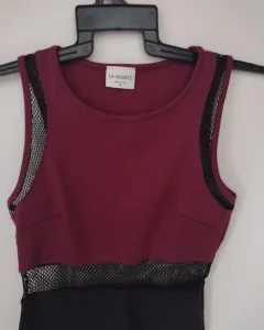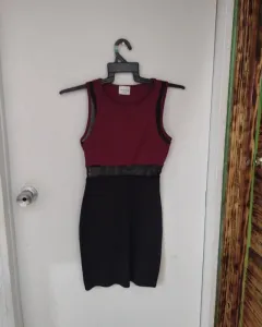 Vestido corto a dos tonos. Hermoso y sexi vestido corto con detalles a los lados del brazo y en la parte de la cintura con una transferencia que lo asé ver sexi es a dos colores por la parte de arriba color vino y por la parte de abajo en color negro está padrísimo no se transparenta ya que es de algodón y no se si sebe queda bien a una talla ch o m.
