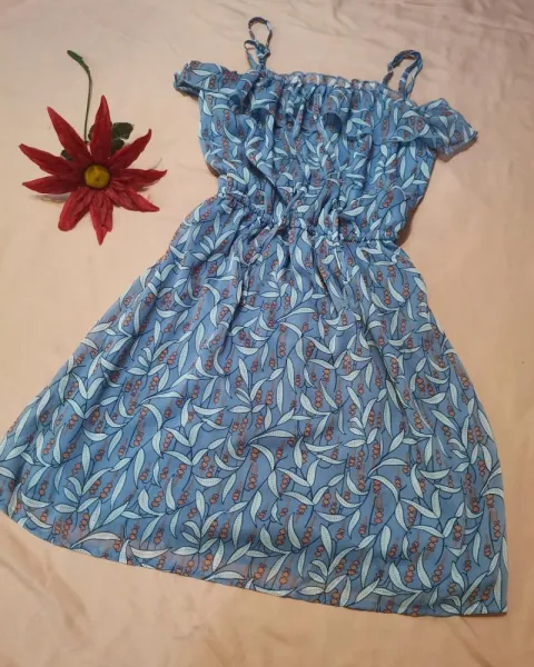 Vestido corto azul talla S, super hermoso te hace lucir hermosa no se transparenta esta como nuevo