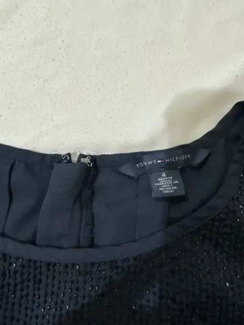 Vestido corto Marca Tommy Hilfiger, color Azul marino, no tiene fondo, incluye un listón de la misma tela para colocar en la cintura, tiene piedreria en la parte del pecho pero se le cayeron algunos realmente casi no se nota.