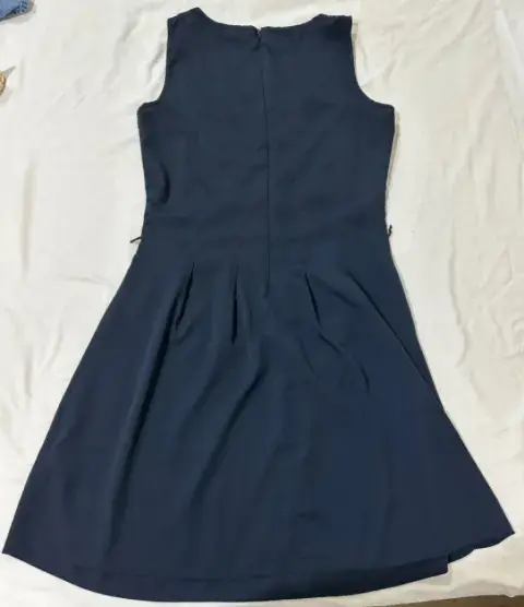 Vestido corto Azul marino, con tela lisa. Vestido corto Marca Tommy Hilfiger, color Azul marino, no tiene fondo, incluye un listón de la misma tela para colocar en la cintura, tiene piedreria en la parte del pecho pero se le cayeron algunos realmente casi no se nota.