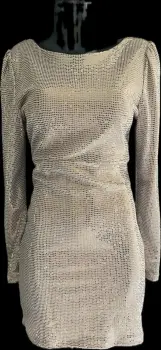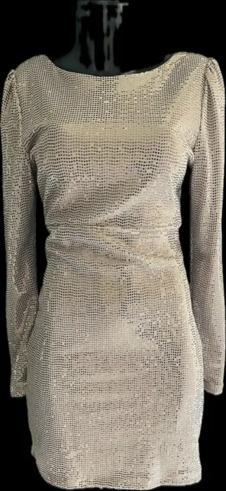 Vestido corto brillante. Hermoso vestido de brillos. Está forrado por dentro. Se ajusta en la espalda con una cinta. La parte de atrás puede quedar un poco floja pero la puedes ajustar con unas puntadas.La tela no estira pero se adapta muy bien al cuerpo