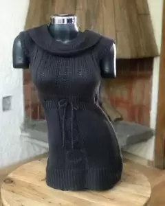Vestido corto cardigan. Precioso vestido tejido de punto es talla mediana pero viene reducido si podría quedar a las dos tallas lo puedes combinar con zapato formal botas largas botines está en perfecto estado en la usé como tres veces nada más