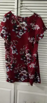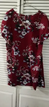Vestido color vino estampado de flores blancas, manga corta, tela muy fresca, no se ha usado antes.
