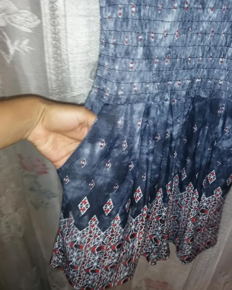 Lindo vestido para este verano azul marino con resorte para escote de hombros delgado y tiene bolsillos en los costados. Talla s/M. Visita mi closets siempre hay algo para ti no te pierdas la experiencia