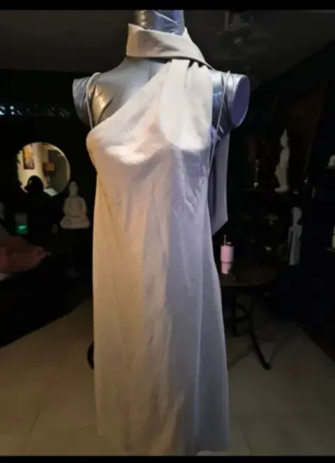 Escote 10/10 en la espaldaColor champagneEs sexy pero eleganteLa cadera viene amplia por lo que puede dar xl