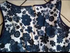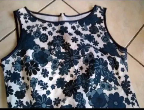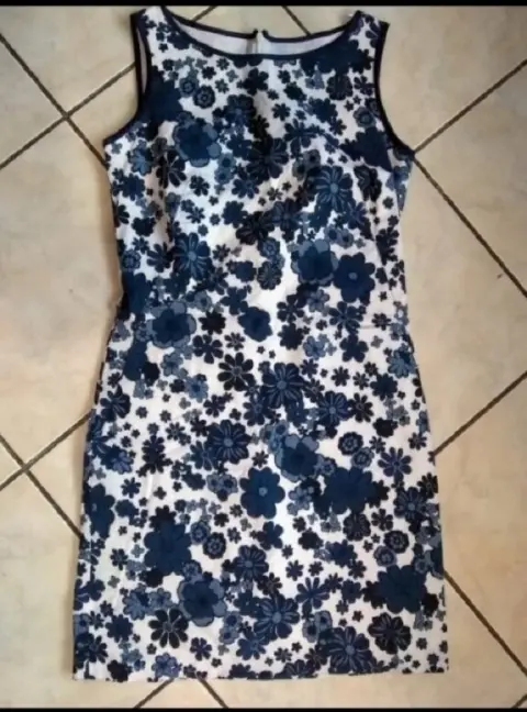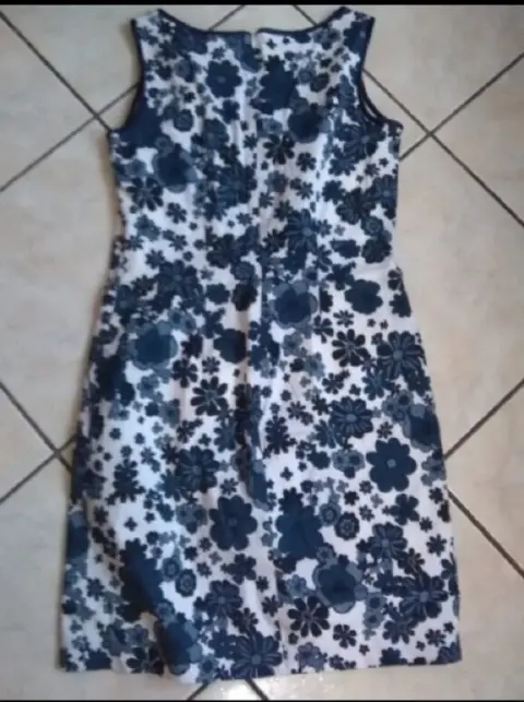 Vestido corto con flores azules. Lindo vestido casual, fresco de algodón strech, ideal para la temporada de calor. La tela no estira mucho, está en perfecto estado, no usado, sin etiqueta.Puedes hacerlo formal con un saco y lindos accesorios.