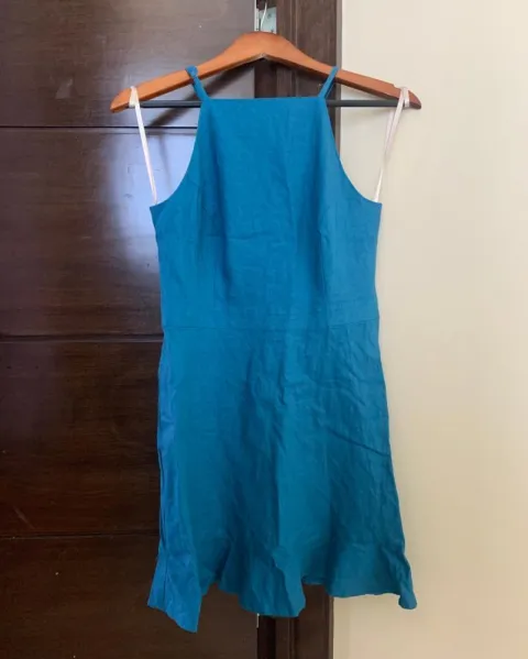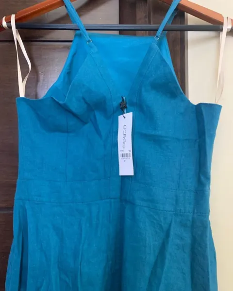 Vestido corto liso con escote halter. Marca BCBGeneration. Talla 6 (S). Sin detalles.