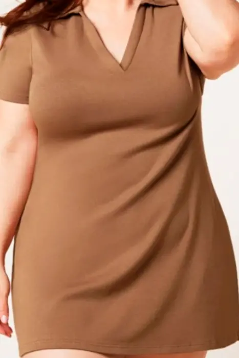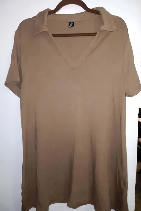 Vestido corto de camiseta algodón café. Vestido ajustado corto de camiseta de algodón , tejido elástico, sin detalles 87 cm de largo,114 cm pecho, 127 cm cintura, 146 cm cadera. Talla 42 mexicanaEnvió a la brevedad.Todas las compras tienen obsequioHago envío único