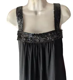 🌻 Vestido corto de Cóctel Aziz 🖤🌻Color negro ☺️🌻Sin mangas 😉 cuello cuadrado con detalles de lentejuelas color negra 🌑🌻 Súper suave y cómodo 👌🏻🌻 Puedes usarlo tanto para una ocasión especial o de forma casual 😉 ☺️🌻Siéntete cómoda y elegante 👌🏻 ¡Te encantará! 🥰
