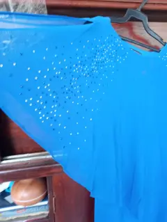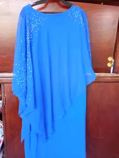 Vestido de fiesta talla mediana corto a la rodilla con capa con brillos tela de chifon