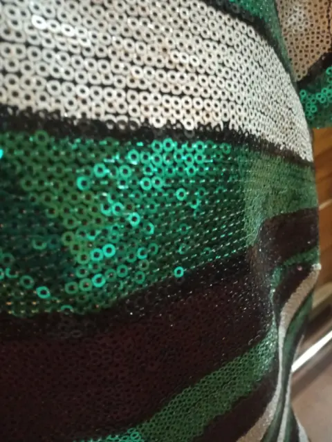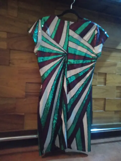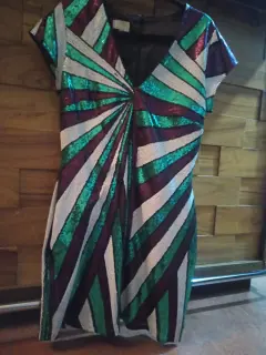 Increíble vestido cómodo y súper elegante. Tiene forro negro y escote muy sutil.Es de una lentejuela muy chiquita y fina que le da una apariencia elegante pero muy sobria.