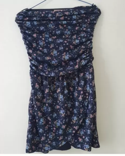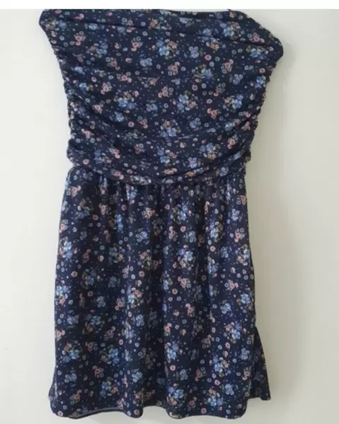 Vestido ideal para el calor , de flores y strapless. Cuenta con forro abajoNo tiene nungun detalle . Debla parte del busto y de la cintura tiene elastico y puede estirar un pocoMedidas: de arriba de costura a costura: 30 cmCintura: 32 cm