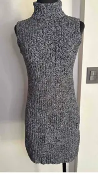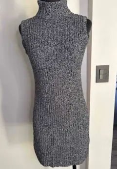 Vestido de punto color jaspeado, cuello tortuga sin manga