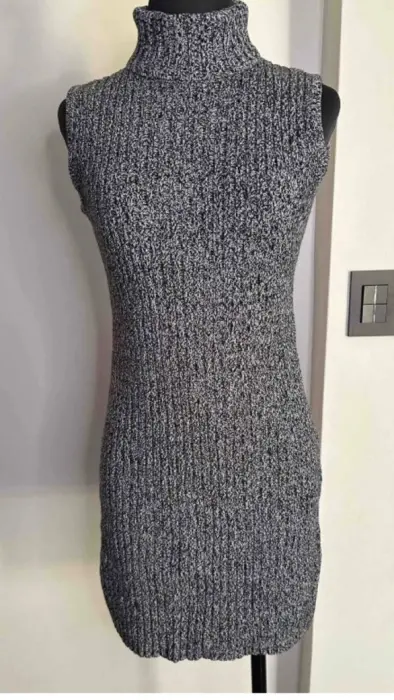 Vestido corto de punto. Vestido de punto color jaspeado, cuello tortuga sin manga