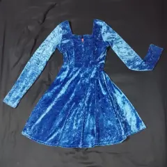 Bonito vestido de terciopelo azúl brillante y suave de manga larga, escote cuadrado, en perfecto estado, sólo se usó una vez, se lava fácil, la tela no pica ni raspa, no transparenta, ajusta al cuerpo ya que estira, es talla M pero está un poco reducido, los accesorios no están incluidos. Haz tu oferta!
