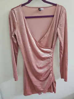 Vestido corto de terciopelo rosa. Vestido corto de terciopelo rosa