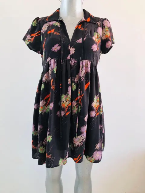 Vestido corto floreado. Hermoso vestido floreado. Manga corta. Cuello V profundo. Medida axila a axila 48 cm. Largo 80 cm. Talla M