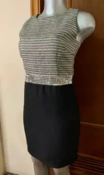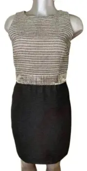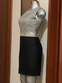 Vestido corto formal, Marca Grifflin, talla M-L. En la parte de arriba la tela tiene destellos en dorado. Medidas: busto 44 cm, cintura 37.5 cm, cadera 50 cm, largo total 91 cm. Hace muy bonito cuerpo 👌🏻