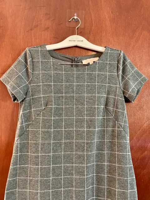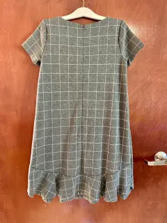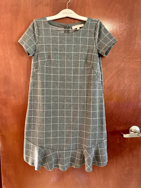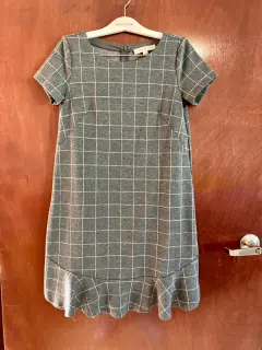 Hermoso vestido gris con cuadros y tableado en la parte de abajo, úsalo con mallas en esta época de lluvias, marca Loft, talla S, en excelente estado.