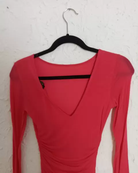 Vestido Rosa (Coral) marca guess , delgadito se manga larga y plisado de los costados , super cortito va bien para un evento de coktail, escote en V en espalda