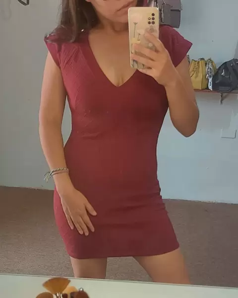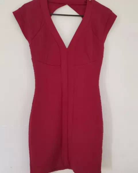 Vestido corto color guinda pegado al cuerpo tela gruesa muy elegante