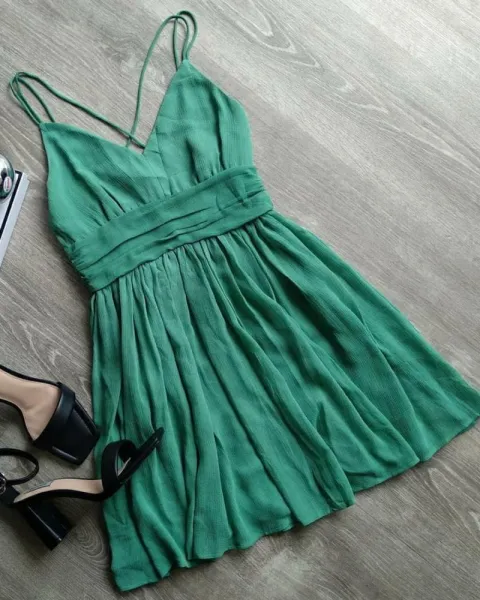 Vestido corto liso. Hermoso vestido verde claro, la tela es semi formal. Lo puedes usar con tenis, zapatillas, chanclitas, alpargatas, etc.