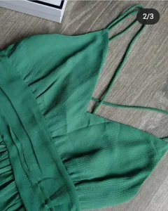 Hermoso vestido verde claro, la tela es semi formal. Lo puedes usar con tenis, zapatillas, chanclitas, alpargatas, etc.
