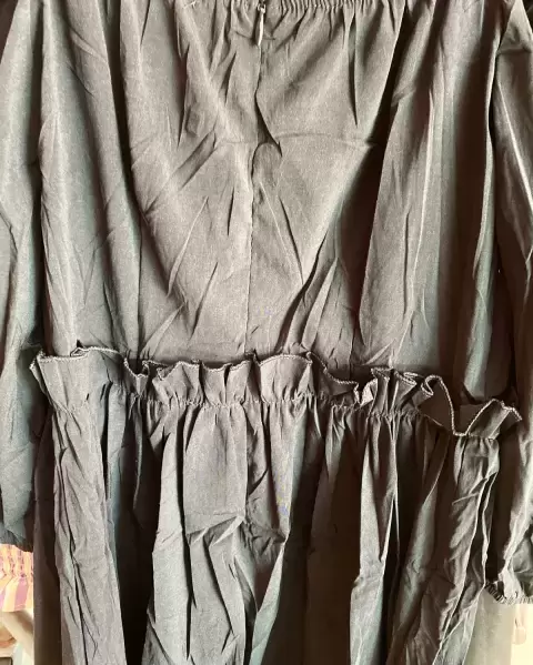 Vestido corto Escote en Corazón Manga larga Plegado en la cintura Talla S color negro ( talla L color Lila )